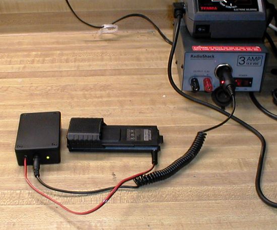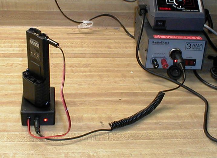 My next two UV-5Rs (bought to actually use as HTs) came with their own chargers, so now I had three CH-5 stands. Along with a caution not to operate the transciever while charging, the Miklor website FAQ for the UV-5R mentions a TYT branded regulated 12V charger safe for use on the BL-5L's side mounted coaxial jack, but apparently you can only get one when you buy the TYT transciever. Apparently the majority of the 3800mAH 12V charging cables available are simply automotive cigarette lighter plugs wired direct to a coaxial plug that fits the BL-5L, but feeding 13.8V or more directly into the battery could have catastrophic results. I got to thinking my extra CH-5 charging stand might be better served safely repurposed as a mobile charger. Being EmCom oriented, I always think of keeping things going with 12V when commercial AC power is down.