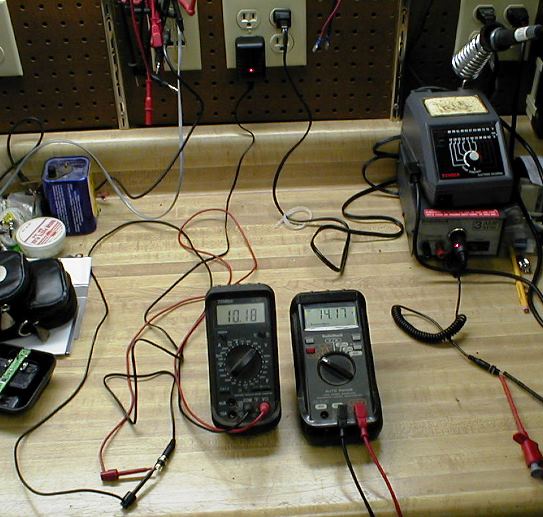 To the left is my DMM reading the unloaded DC output of the CH-5's wall adapter. The DMM on the right is reading the unloaded output of an automotive cigarette lighter plug cable, sold as a 3800mAH Baofeng battery charging cable by the same Chinese eBay vendor I purchased a UV-5R with BL-5L from, plugged into a 13.8V 3A bench supply. Caveat emptor.